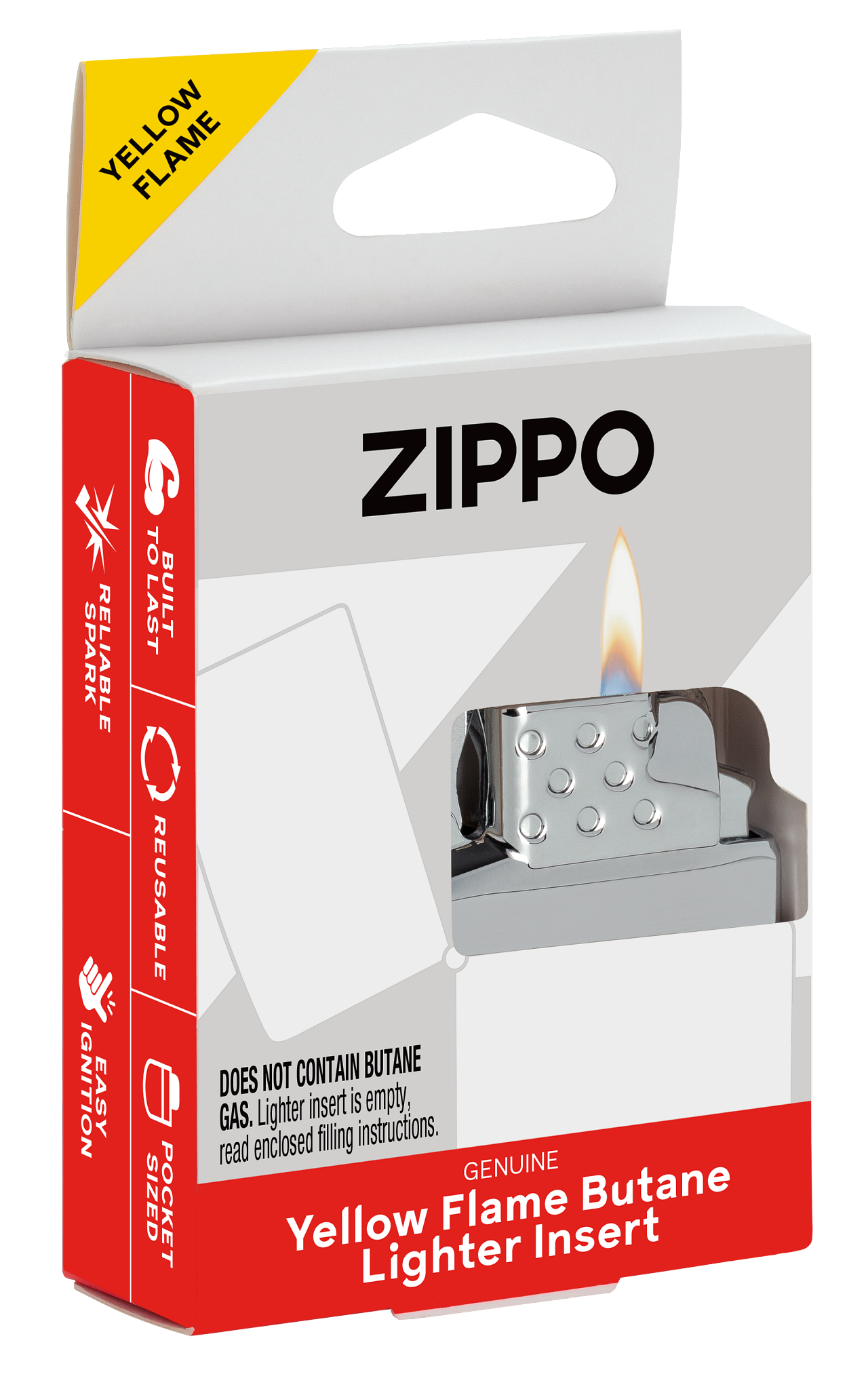 Zippo's yellow flame butane insert is the perfect accessory for any classic Zippo lighter case. The refillable butane insert stays true to Zippo's roots in form and function and produces an odorless yellow flame for even more versatility. Backed by our best-in-class warranty for years of reliable use. For optimum performance, fill with Zippo butane fuel. Comes packaged in a gift box.