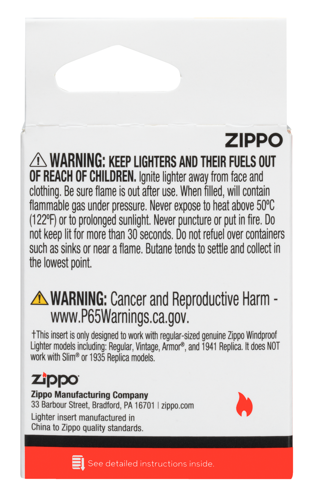 - Insert retains the famous Zippo "click" sound