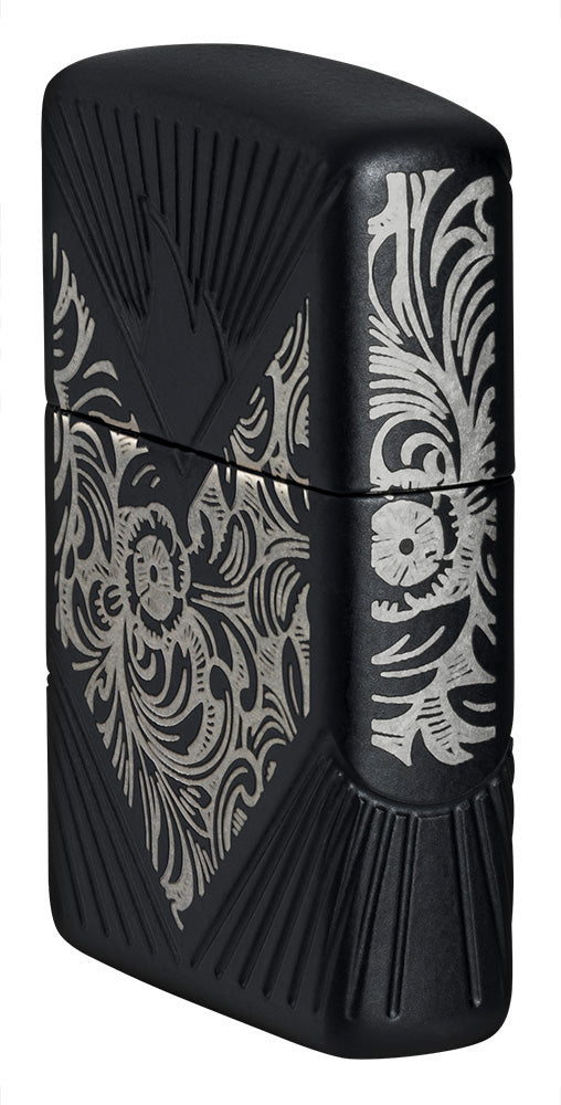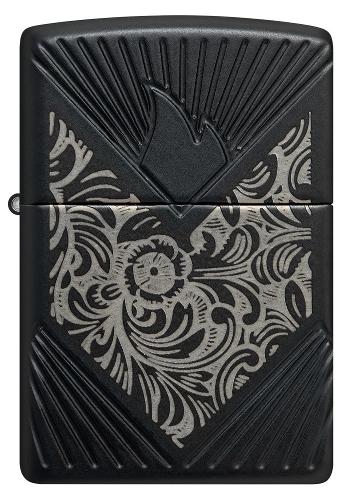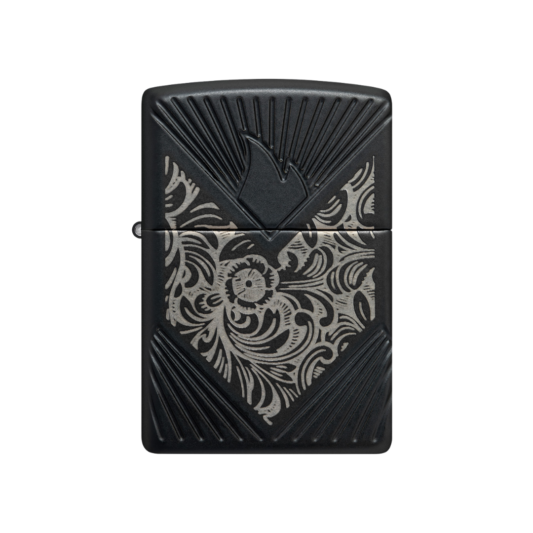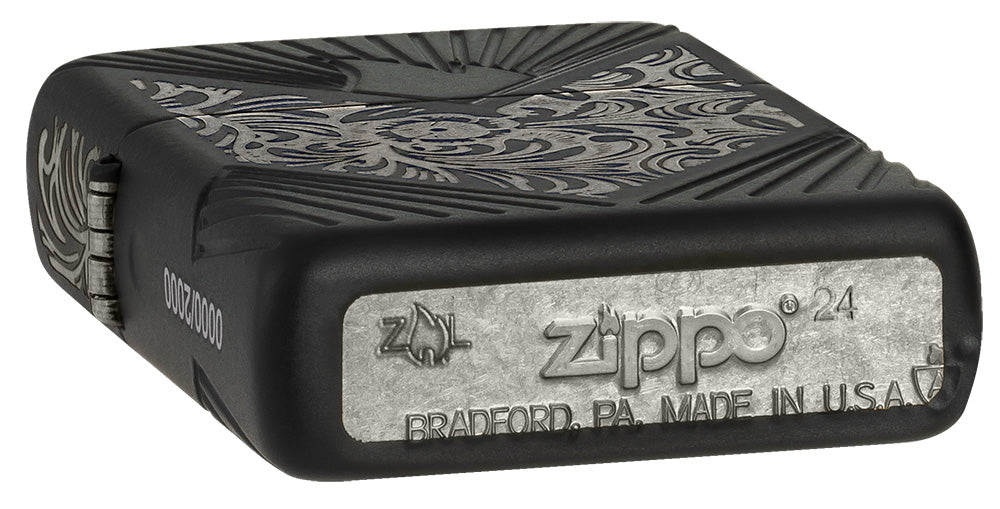 Introduced as the Florentine in 1974, the iconic Venetian® pattern swirls on all sides of the Armor® case with our Laser Engrave process. The ornate design contrasts beautifully with the Black Matte finish, which made its debut in 1984, while the Zippo icon is nestled among diagonal MultiCut pinstripes in an ode to the very first Deep Carve design unveiled in 2004. Finally, the Venetian pattern is replicated with delicate laser engraving on the chrome insert, which was chosen specially for Europe, the Middle East and Africa.
