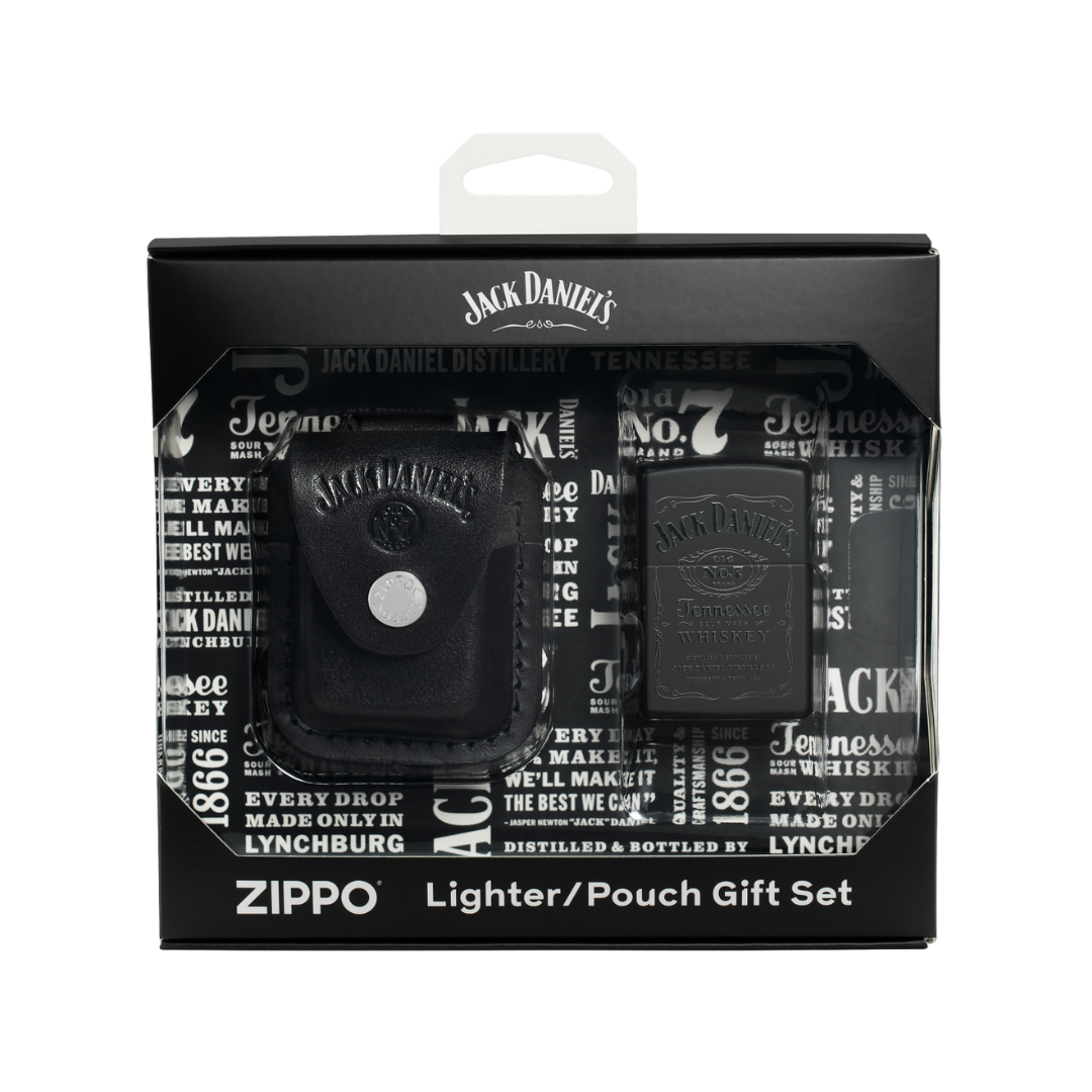 Few brands exemplify American craftsmanship and quality better than Zippo and Jack Daniel’s®, and the two iconic brands come together in this smooth and sophisticated pairing. The sleek Black Matte lighter features the iconic Jack Daniel’s® logo replicated in a black Color Image design for an elegant tone-on-tone effect. The genuine leather pouch complements the classic lighter with the Jack Daniel’s® Old No. 7 logo debossed into the flap. Together, this set celebrates a shared heritage of ingenuity and excellence and is the perfect addition to any connoisseur’s collection. Comes packaged in a gift box. For optimal performance fill with Zippo lighter fuel.