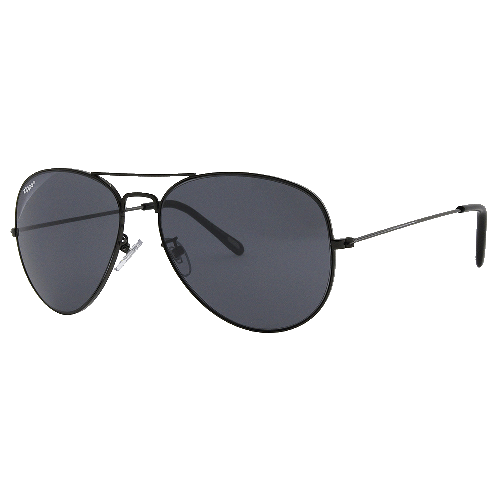 Get stylish sun protection with these Black Flash Pilot style Sunglasses. Featuring a rounded shape. The left lens is adorned with our Zippo logo in white.