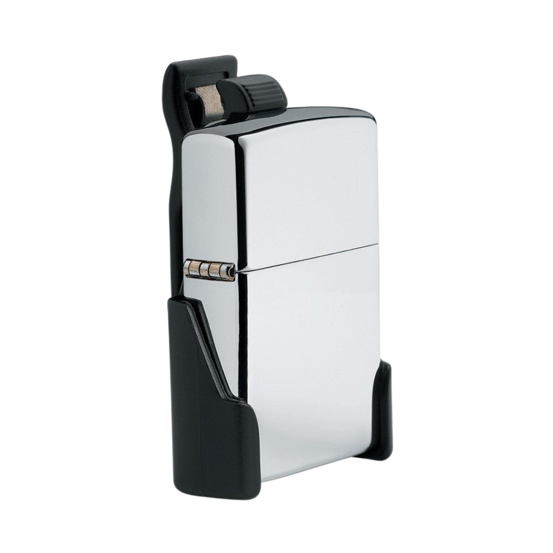 The Zippo Z-Clip keeps your Zippo lighter handy. Features of the Z-Clip include a sturdy black plastic unit that clips onto belts, waistbands, pockets, or sun visors. Holds your Zippo windproof lighter securely, yet is easily accessible. Comes packaged in a black Zippo box.