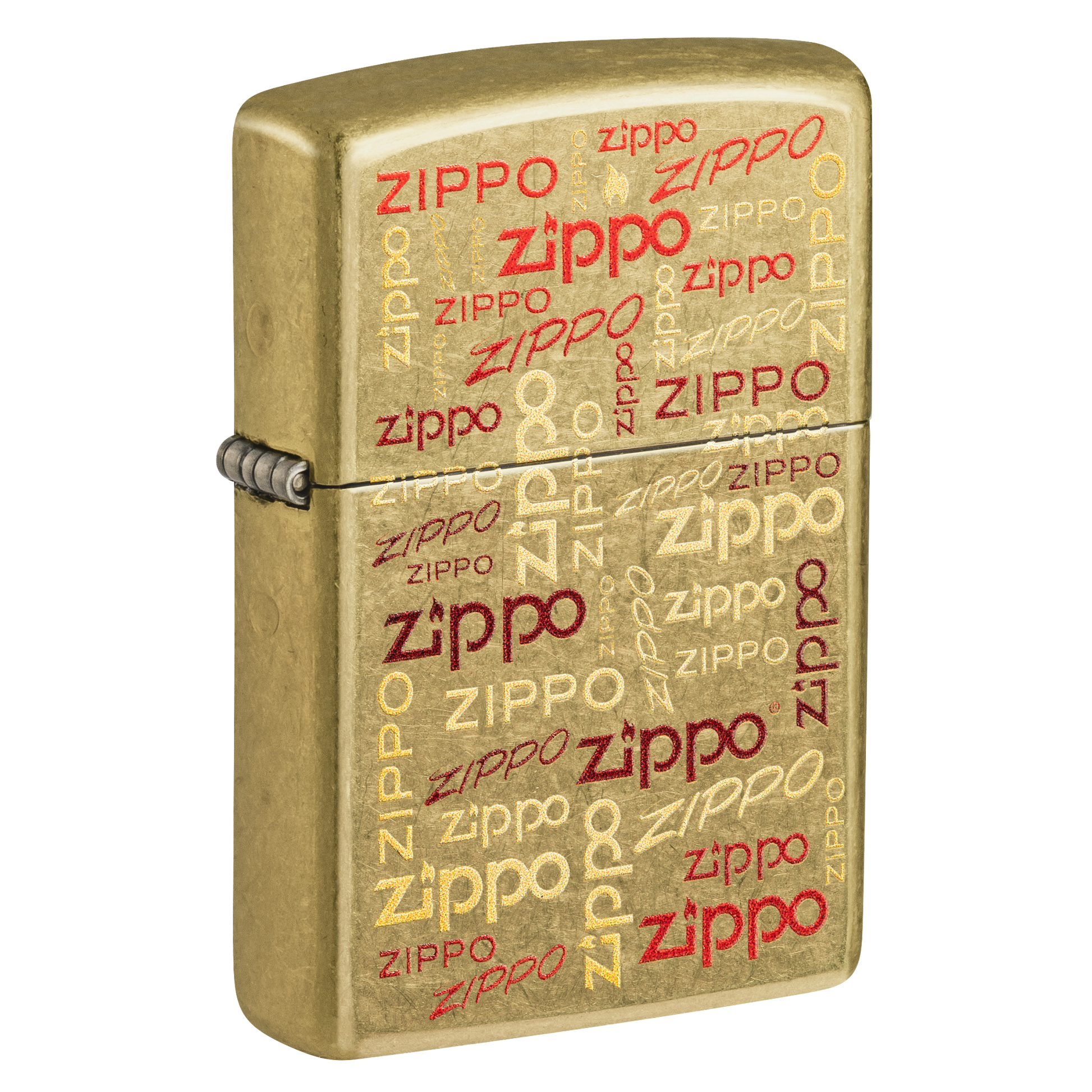 Adorned with a collection of Zippo logos on a street brass base.
